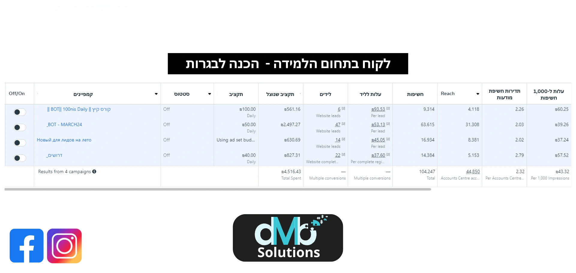 אם המטרה שלכם היא להביא לידים חדשים והיעד שלכם הוא 100 לידים לחודש